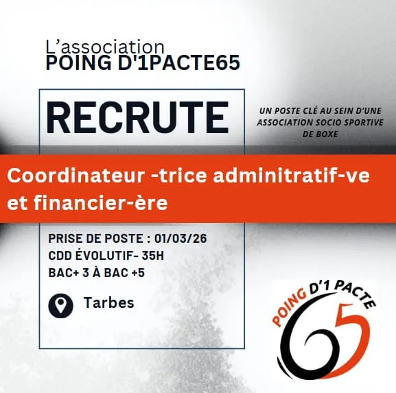 POING D’1 PACTE 65 est une association socio-sportive reconnue d’intérêt général, dont la mission s’inscrit dans une démarche partenariale en lien étroit avec les acteurs associatifs, institutionnels et publics du territoire. Son projet associatif repose sur la conviction que l’activité physique et sportive en général et la boxe en particulier, constituent un levier puissant de développement personnel, de cohésion sociale et de promotion de la citoyenneté.